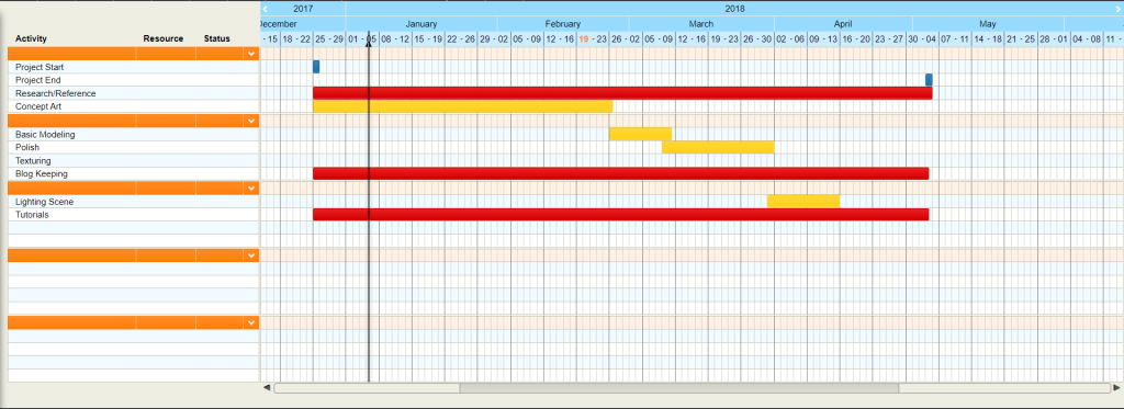 As part of this weeks tutorial session, we were asked to create a Gantt Chart to show our planning for the Foundation Project piece. My chart shows how I plan to spend my time on this project and shows the amount of time I have alloted to each task. The red markers indicate Long Term Goals while the Yellow markers indicate short term goals. The Gantt Chart was created here.